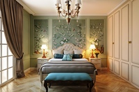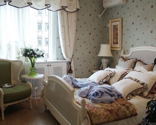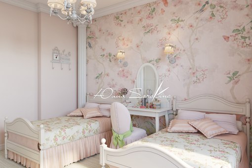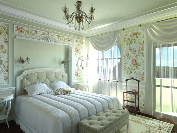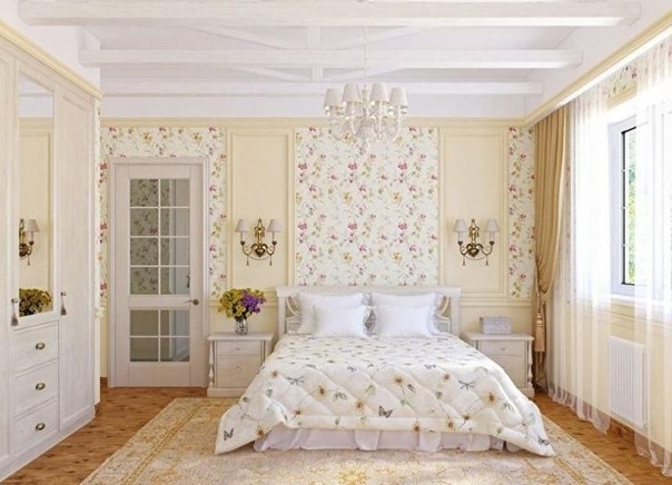 Романтическая атмосфера юга Франции — это пастельные тона (светло-серый, розовый, мятный, сиреневый, молочный) и на их фоне мелкие цветочные принты. Чтобы комната не казалась однообразной, обоев с рисунками необходимо чередовать с одноцветными, а также удерживать баланс при выборе текстиля.