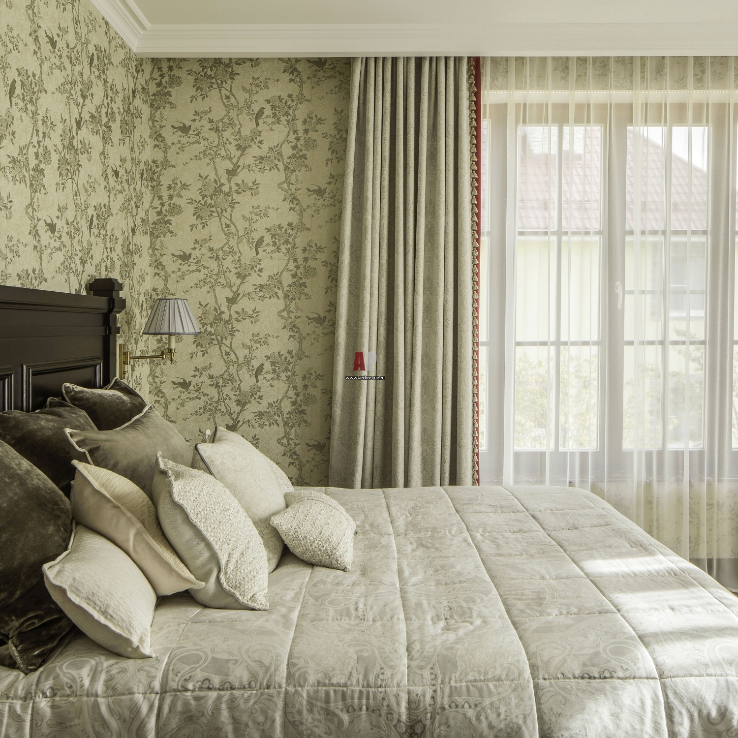 Спальня в английском стиле в традиционной квартире на западе Москвы.