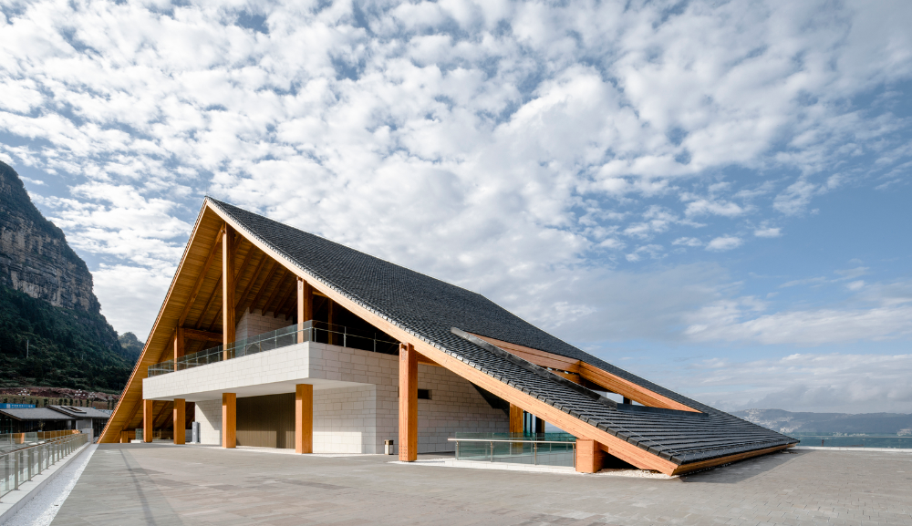 © Arch-exist Photography & Wuyu Visual Сборная железобетонная лестница соединяет два этажа, образованные Z-образными элементами, скрепленными друг с другом.