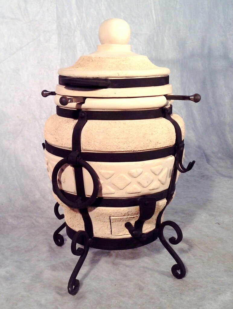 Вариант небольшого переносного тандыра из керамикиС их помощью, как утверждают гурманы, невозможно получить такое удивительно вкусное, нежное мясо по-восточному. К тому же сам процесс готовки в них занимает больше времени.