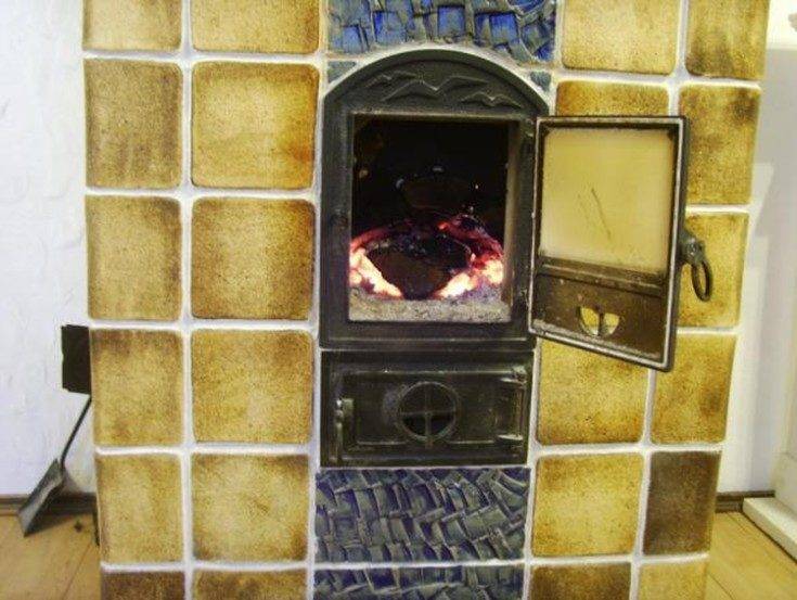 Плитка, нагреваясь, помогает быстрее протопить помещение и увеличивает количество тепла внутри печи.