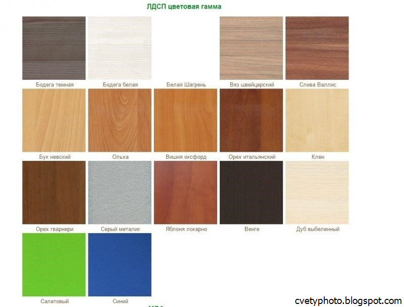 Следует отметить, что у разных производителей цветовая гамма может немного различаться, но несмотря на это, все многообразие оттенков можно условно разделить на группы. Каждая категория имеет название той породы дерева, которой она соответствует. Ниже представлены самые популярные цвета мебель фото с названиями помогут не ошибаться с выбором, правильно подобрать нужную расцветку.