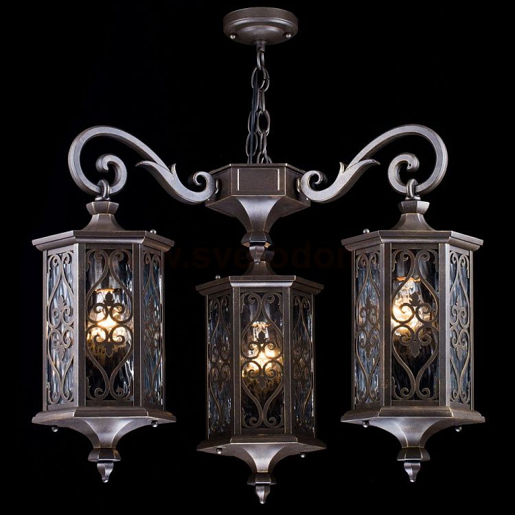 Solaris English Бронзовая уличная люстра с тремя лампами