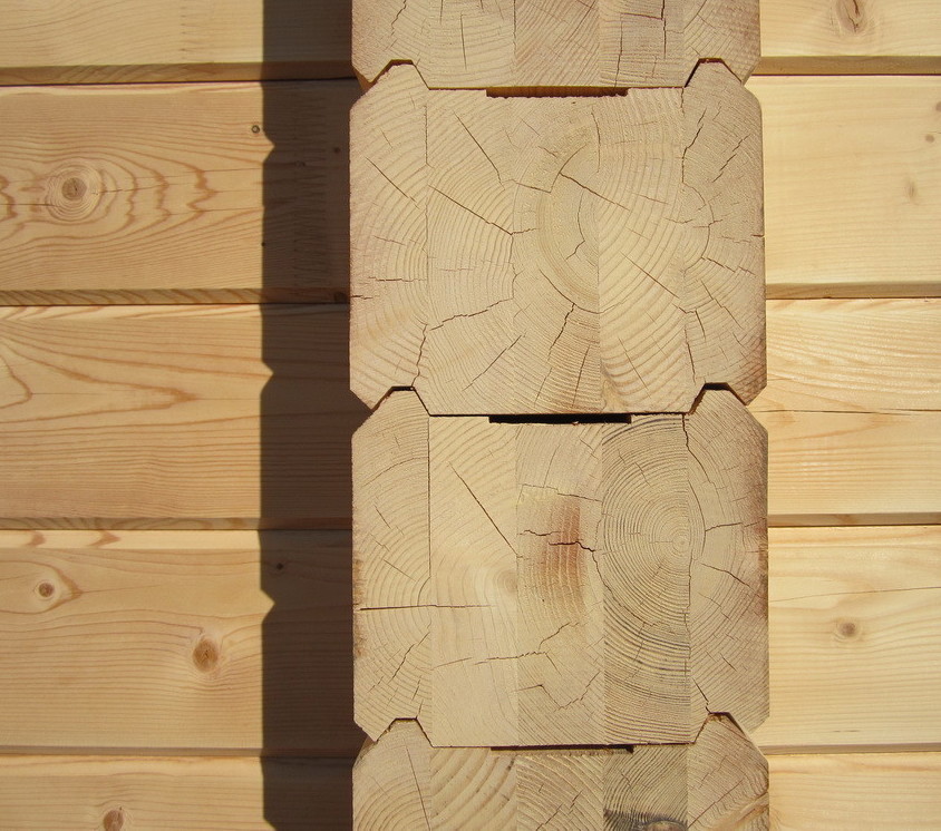 Дом из профилированного высушенного бруса даст усадку всего на 2,5 см, что делает очевидным выгоду предварительного высушивания древесины.