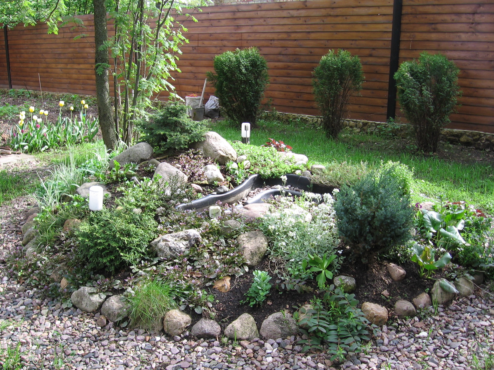 Избегайте совершенной симметрии в расстановке камней, т.к. общий вид должен напоминать кусочек природного участка, не тронутого рукой человека.