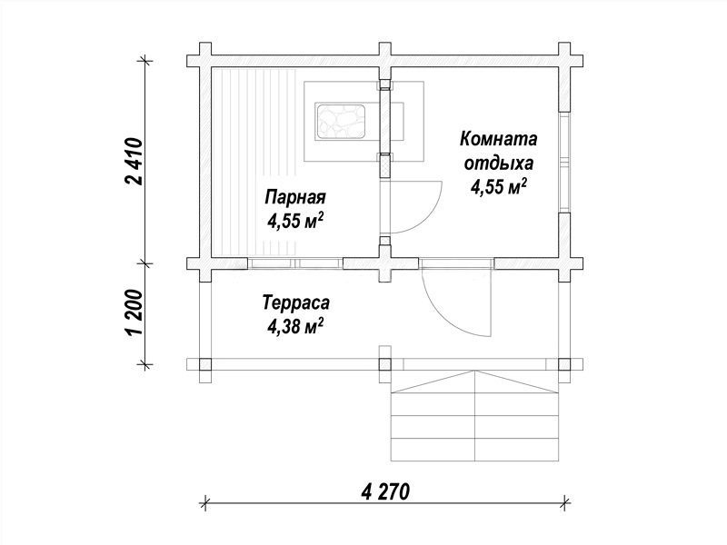 Вариант планировки постройки с террасой, парилкой, предбанником и моечной