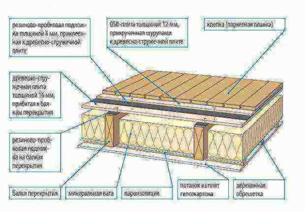 Утепление межэтажного перекрытия по деревянным балкам для первого этажа над подвалом, второго и выше
