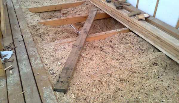- Укрыть пароизоляционной пленкой, а сверху уложить фанеру или чистовой дощатый пол.