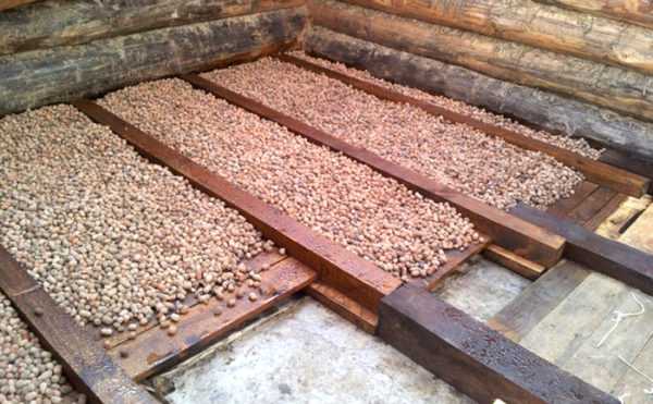 Далее устанавливают слой утеплителя. На первом этаже удобно использовать сыпучие наполнители. Это может быть керамзит, перлит, печной шлак, другие материалы. Между этажами оптимально использовать минеральную вату, пенопласт, стекловату или другие плитные и рулонные утеплители.