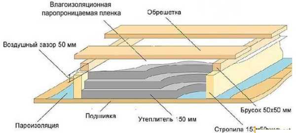 - придется предусматривать сложную вентиляционную систему подкровельного пространства в зоне стыков лаг и стропил;