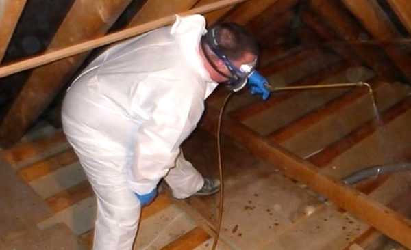 Клеевой способ похож на предыдущий, но вместо воды добавляется клеящий компонент. Преимущества техники: высокая адгезия утеплителя со стеной, эластичность материала и низкая деформация после высыхания. Клеевой метод незаменим при теплоизоляции потоков снизу, вариант подойдет и для обработки стен.