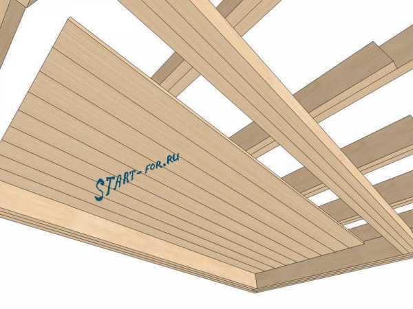 - Потолок обшить OSB, гипсокартонном, фанерой или вагонкой.