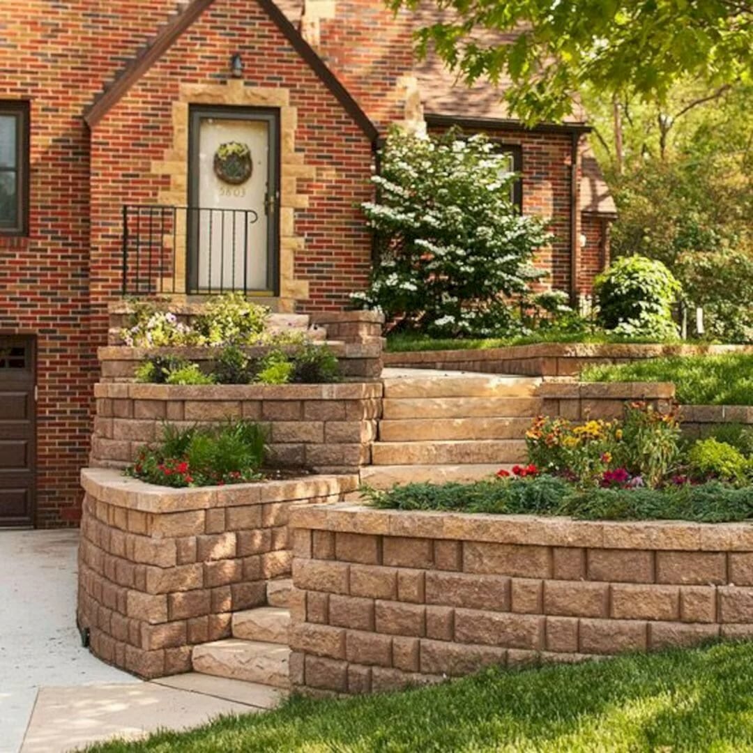 Если ландшафт имеет неровности и его нужно подкорректировать, прокладывается маршрут подпорных стен. Их строительством следует заняться в первую очередь, так как до укрепления склонов высаживать растительность не имеет смысла.