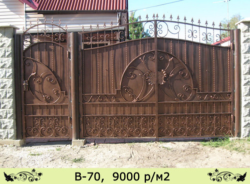Непрозрачные калитки призваны защитить участок от посторонних глаз. Вариант этот достаточно популярен: не каждый желает выставлять свою частную жизнь на обозрение — глухой забор и калитка придают ощущение защищенности и спокойствия. Чтобы сделать сплошное полотно более эстетичным, его украшают коваными деталями, резьбой или устанавливают красивые столбы забора. - Ажурные конструкции. Самыми привлекательным и востребованным решением для ажурного варианта является ручная ковка. Это возможность создать неповторимый и оригинальный дизайн и получить прочную и долговечную калитку. Более простое решение — сквозные калитки из металлического или деревянного штакетника и сварной сетки.