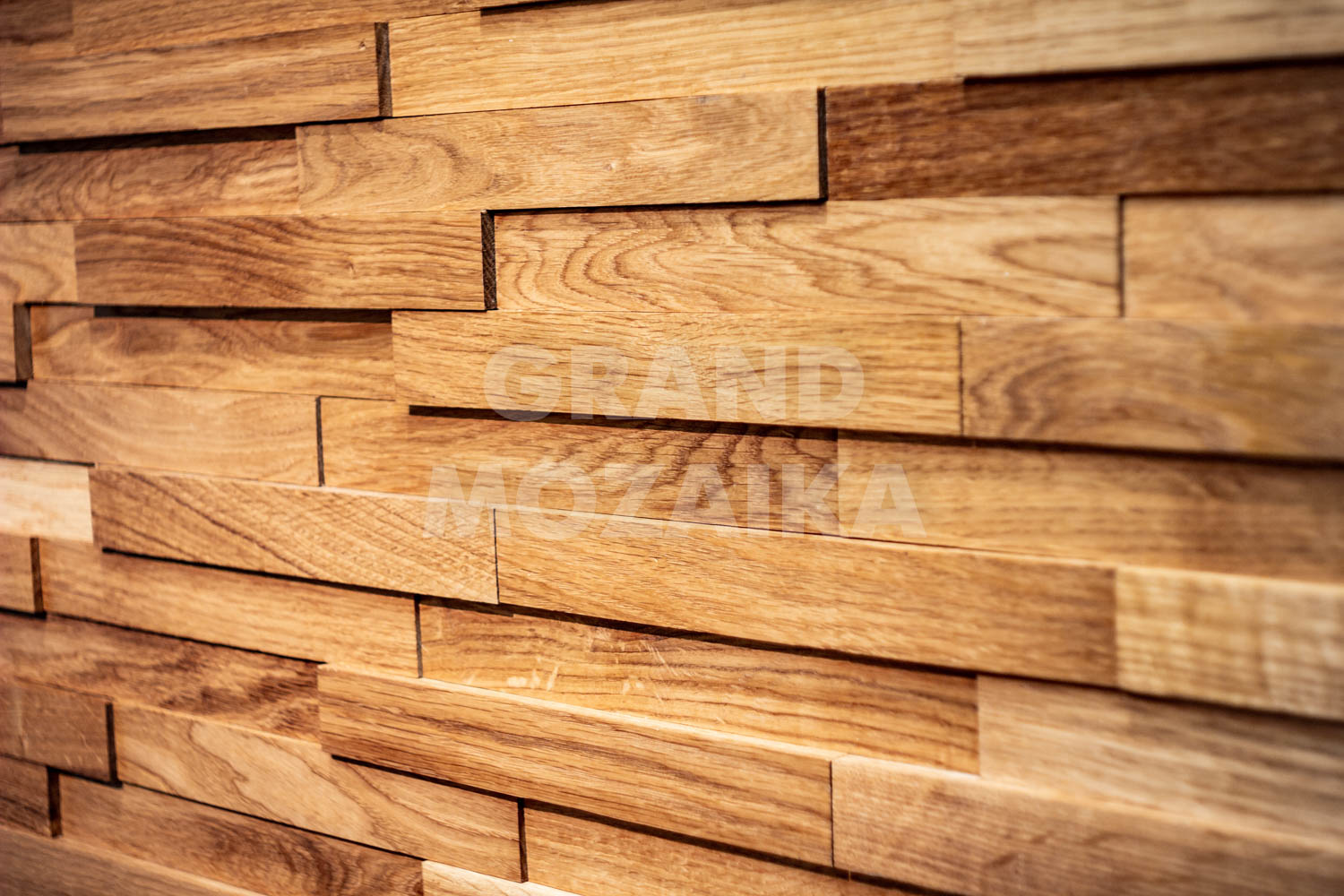 По виду материала, фактуре, характеру поверхности такие плитки могут быть разнообразными и использоваться в различных помещениях. Их монтаж производится чаще всего на деревянную обрешетку. - Рейки. Длинные прямоугольные стеновые панели в виде реек или вагонки – прекрасный вариант внутренней отделки помещений небольшой площади, поскольку такая форма позволяет визуально увеличить размер комнаты. Следует учитывать, что выбирая рейки, покупатель должен учитывать особенности их монтажа. Чаще всего они как и плитки фиксируются к деревянной или металлической обрешетке стены, однако для незаметного крепления используются скрытые кляммеры, а между собой рейки соединяются по системе «шип-паз». Длина таких реек зависит от высоты отделываемого помещения и может достигать 3 700 мм.
