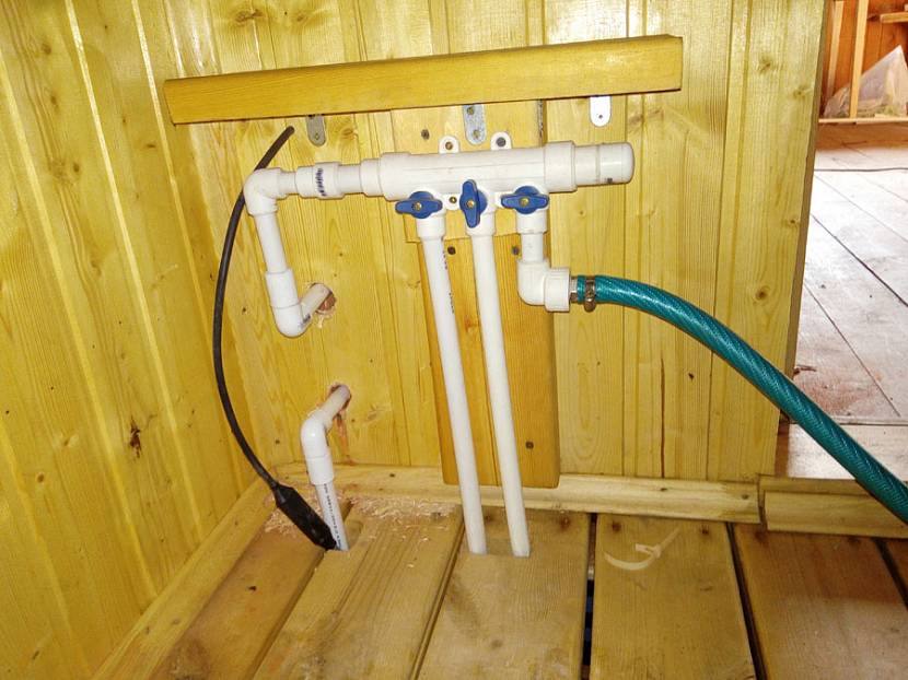 Внутри банного помещения пластик можно применять без ограничений. При закрытом вентиле для водной подачи и открытых кранах вода всегда будет сходить в нижнюю точку водопровода, которую обычно оборудуют линией жидкостного сброса. Исключением станет переход от коллектора водопровода до бака и крана для горячей воды в парилке. Такую часть магистрали для воды в бане делают из 0.5 дюймовой трубы из стали.