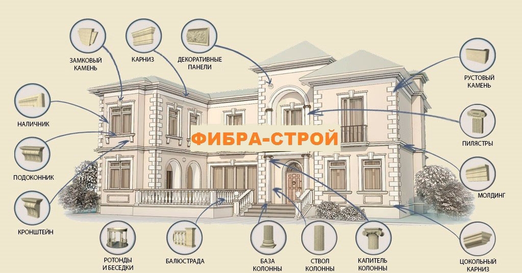 Чтобы красиво оформить главную сторону, некоторые профессионалы советуют применить лепнину, изразцы. Можно воспользоваться обыкновенной штукатуркой, окраской.