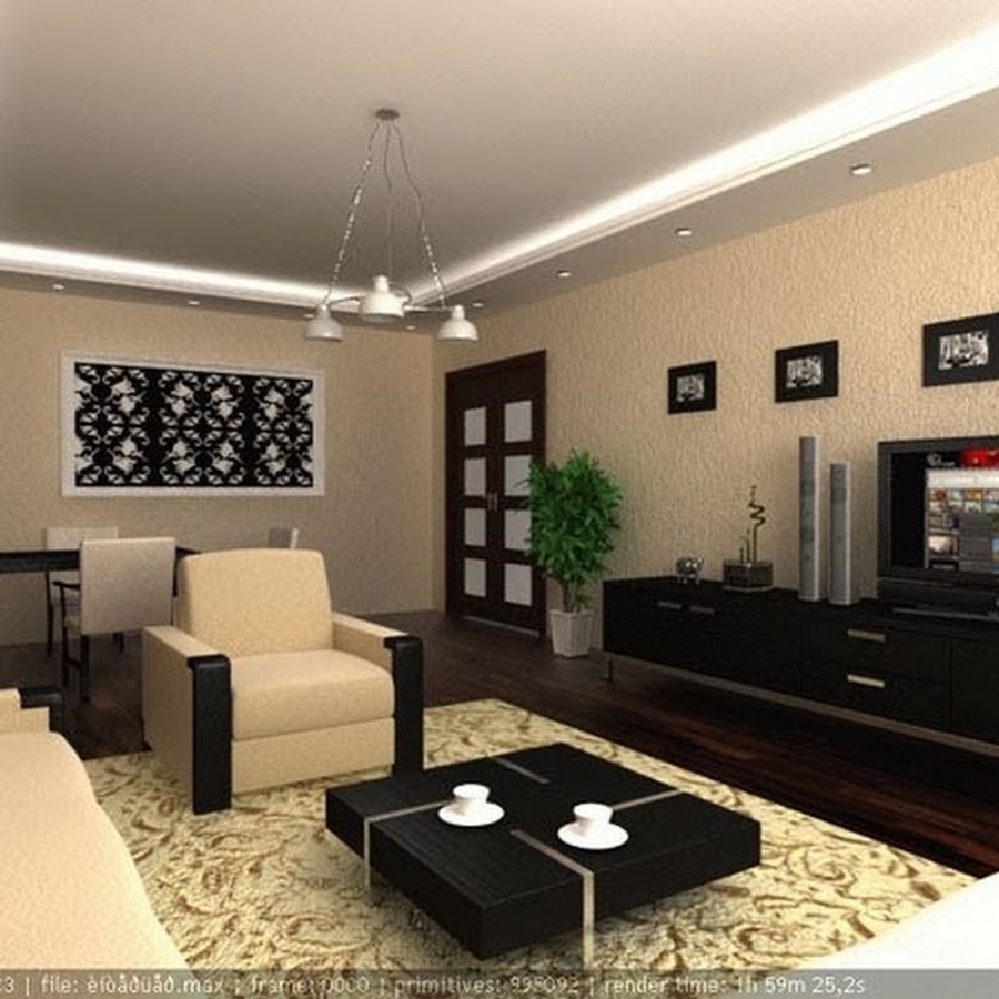 Натяжной потолок со встроенным освещением смотрится очень элегантно в интерьере гостиной