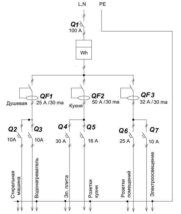 ЦЕПИВ обычном доме обычно не менее 5 цепей. На однолинейной схеме мы увидим их в виде линии, в которую включены все проводники.